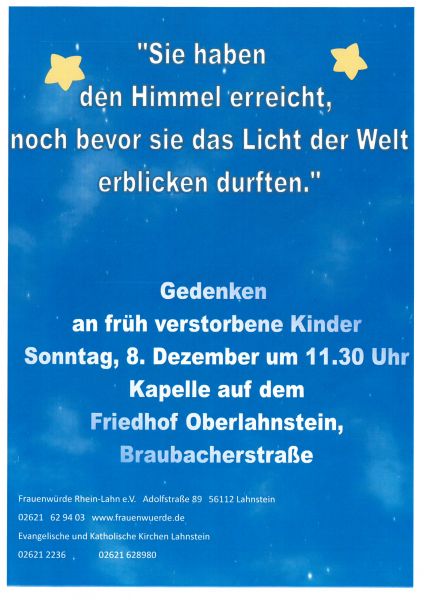 Am 2. Advent beteiligen wir uns am Gedenktag für die Kinder, die viel zu früh gegangen sind.